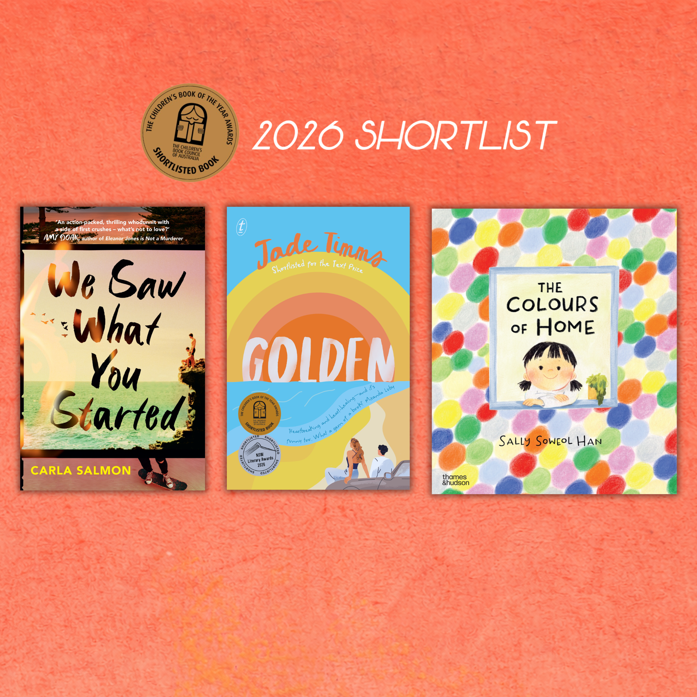 A special hooray as well to our new client Jade Timms and the Text Publishing team for the shortlisting of GOLDEN in the Older Readers category.